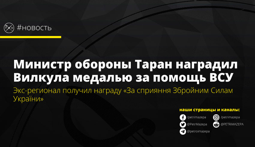 Министр обороны Таран наградил Вилкула медалью за помощь ВСУ
