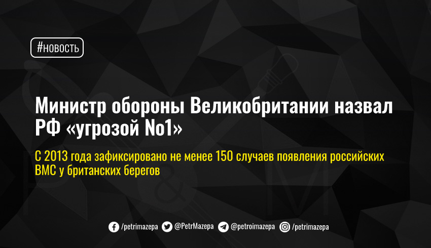 Министр обороны Великобритании Бен Уоллес заявил, что подводные лодки РФ кружат вдоль всего побережья Великобритании и назвал Москву «угрозой номер один» для Великобритании.