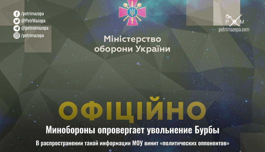 Пресс-служба Министерства обороны назвало «очередной дезинформацией» новости про уход Василия Бурбы с военной службы. Информацию о «факте и обстоятельствах» якобы свершившегося увольнения назвали ложными.