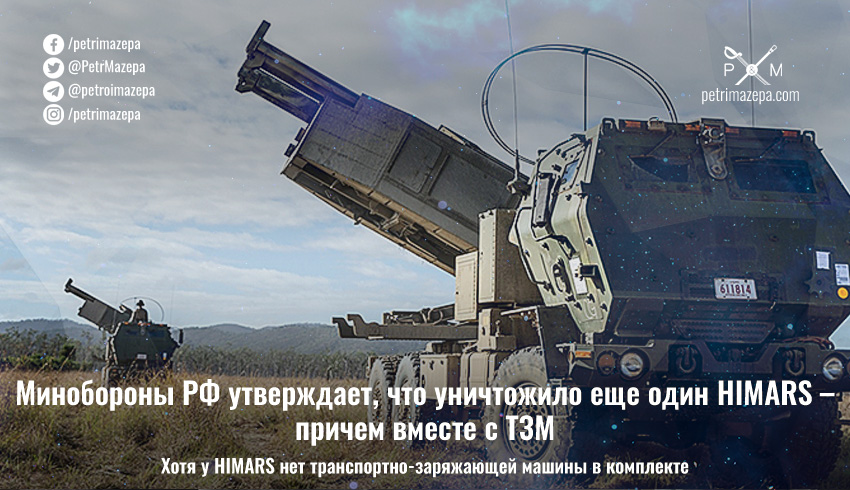 Минобороны страны-агрессора сегодня решило в своих отчетах снова «уничтожить» РСЗО HIMARS. А чтобы целевой аудитории было понятнее, дописали к якобы уничтоженной американской РСЗО еще и уничтоженную транспортно-заряжающую машину (ТЗМ).