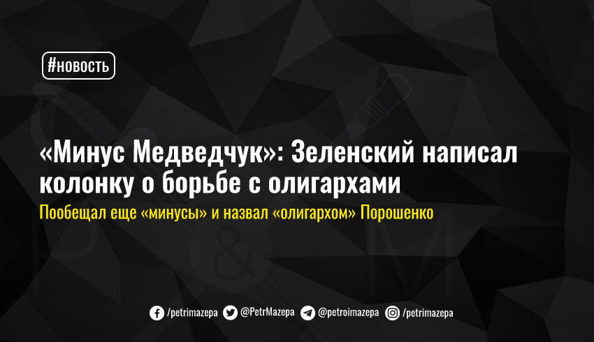 «Минус Медведчук»: Зеленский написал колонку о борьбе с олигархами