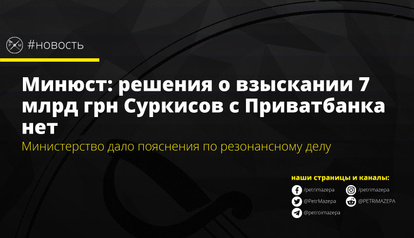 Минюст: решения о взыскании 7 млрд грн Суркисов с Приватбанка нет