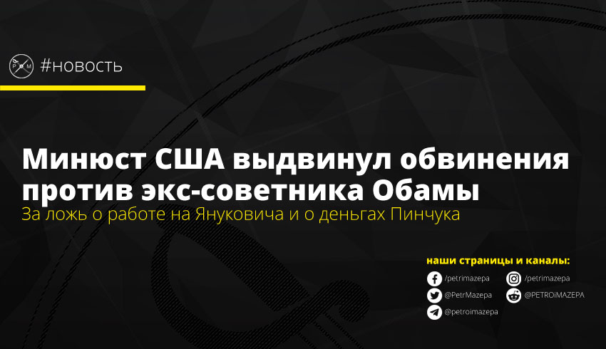 Минюст США выдвинул обвинения против бывшего советника Барака Обамы, Грегори Крейга. Его обвиняют в даче ложных показаний и нарушении Закона о регистрации иностранных агентов. По данным следствия, он, как партнер в юридической компании Skadden, Arps, Slate, Meagher & Flom LLP по поручению Пола Манафорта и за деньги Виктора Пинчука подготовил для Минюста времен Януковича доклад об осуждении Юлии Тимошенко.