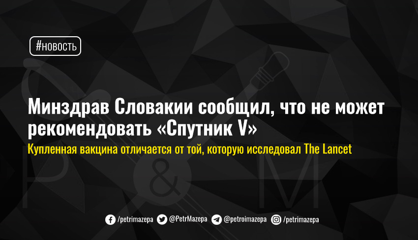 Как сообщает DennikN, выяснилось, что она не идентична той, результаты проверки которой опубликованы в авторитетном медицинском журнале The Lancet. Словацкое правительство в своих обоснованиях закупки российской вакцины опирался именно на это исследование.