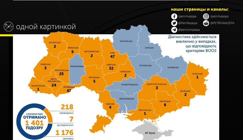 Минздрав сообщил о 218 случаях заражения коронавирусом в Украине