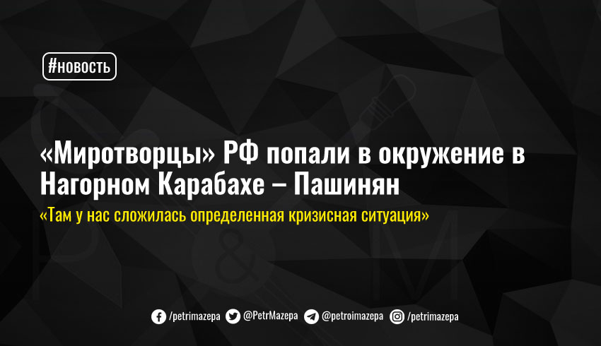 «По нашим сведениям, российские миротворцы также находятся в окружении. Есть проблема со связью, потому что из-за местоположения, а также из-за событий есть определенные проблемы со связью, причем эти проблемы есть и у российских миротворцев, и там у нас сложилась определенная кризисная ситуация», - цитирует заявление Пашиняна «Радио Азатутюн».
