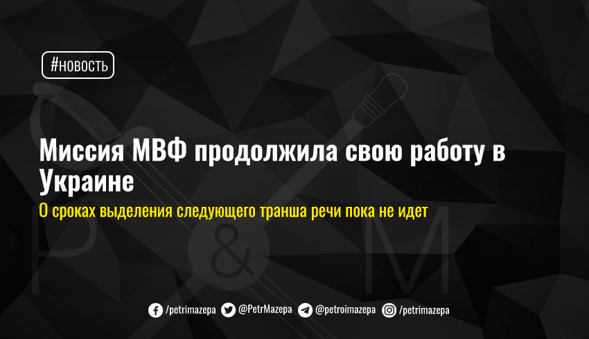 Миссия Международного валютного фонда продолжила свою работу в Украине, решения о продолжении финансирования по программе stand-by пока нет.