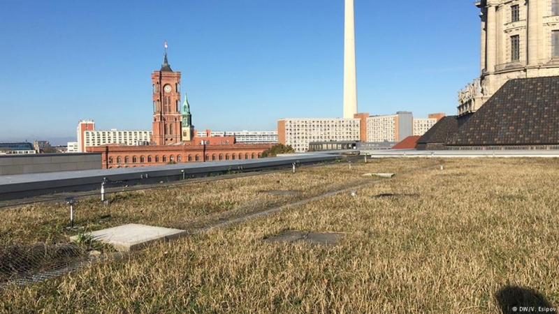Ідея «міста-губки» — частина великого проекту з адаптації інфраструктури Берліна до наслідків глобальної зміни клімату. По всьому місту вже налічують понад 18 тисяч озеленених дахів, у тому числі — дах будівлі міської компанії з водопостачання. Коли виходиш на нього, опиняєшся немов на галявині посеред лісу: під ногами мох і травичка, крізь яку тут і там пробиваються на світ гриби.