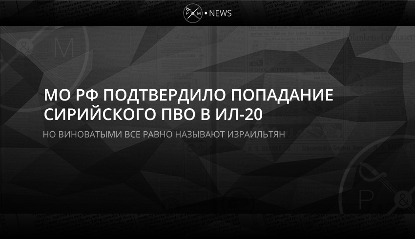 Министерство обороны России подтвердило, что российский разведчик Ил-20 был сбит сирийской ПВО. Но вину представители страны-агрессора возлагают не на своих подопечных, а на ВВС Израиля.