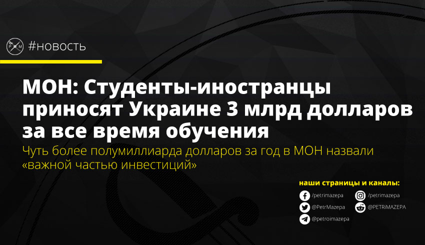 Министерство образования и науки Украины сообщило, что студенты-иностранцы приносят Украине более трех миллиардов долларов в год, и это «важная составляющая инвестиций из-за границы в экономику украинского государства».