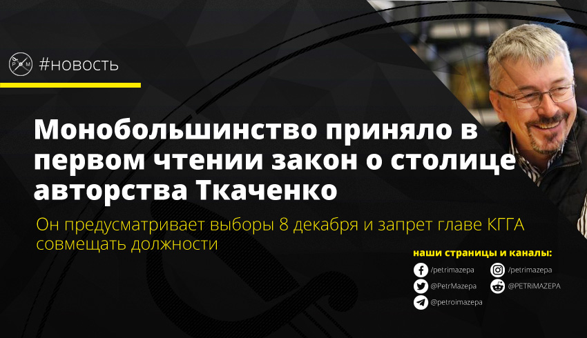 Верховная Рада поддержала за основу законопроект № 2143-3 «О городе Киеве - столице Украины», первым автором которого указан Александр Ткаченко. Этого же экс-гендиректора «1+1» называют и одним из возможных претендентов на кресло городского головы Киева.