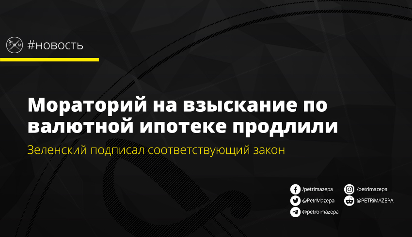 Президент Владимир Зеленский подписал закон «О внесении изменений в некоторые законодательные акты относительно моратория по взысканию имущества граждан Украины, предоставленных как обеспечение кредитов в инвалюте».