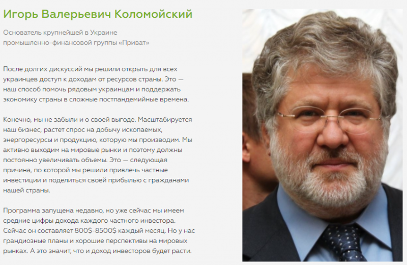 Отмечается, что мошенники обещают высокие доходы по схеме, напоминающей финансовую пирамиду. И для ее рекламы используют фото Игоря Коломойского и тему неких «национальных ресурсов».