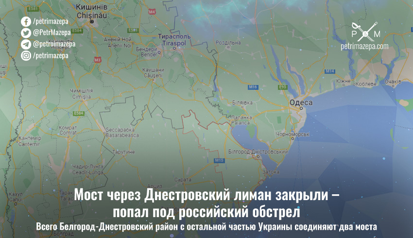По Одесской области был совершён очередной ракетный удар армией страны-агрессора. По официальным данным, повреждён мост через Днестровский лиман. Всего таких моста два. И только они связывают южную часть области с остальной территорией Украины.