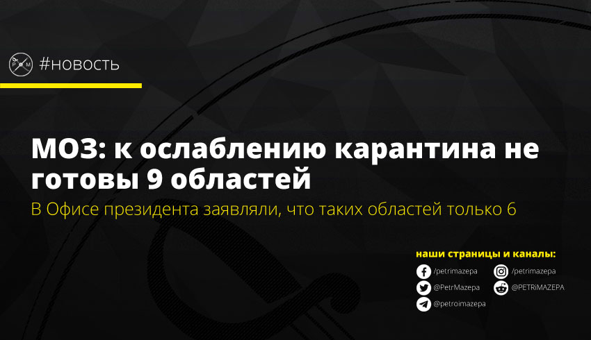 В Министерстве здравоохранения заявили, что к выходу на второй этап карантина и ослаблению ограничений не готовы 9 областей. При этом в Офисе президента заявляли, что не готовы к ослаблению карантина только 6 областей.