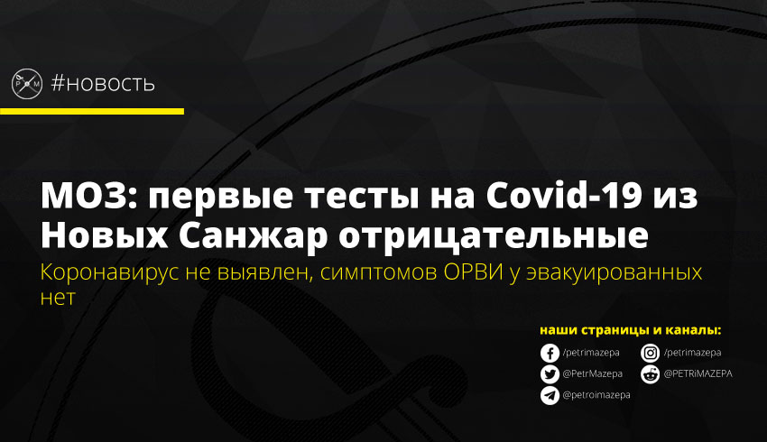 Министерство здравоохранения получило тесты эвакуированных украинцев и иностранцев, которые сейчас находятся на обсервации в Новых Санжарах, коронавирус Covid-19 обнаружен не был.