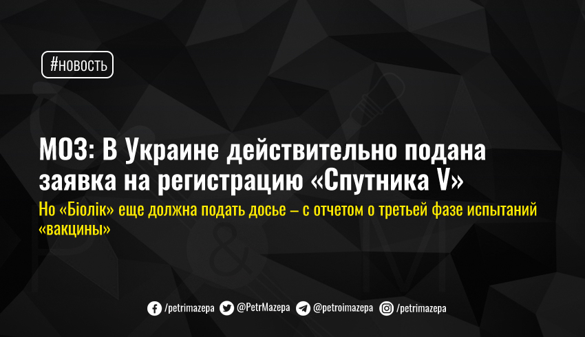 МОЗ: В Украине действительно подана заявка на регистрацию «Спутника V»
