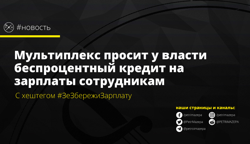 ЧАО «Мультиплекс-холдинг» обнародовало обращение к президенту Украины Владимиру Зеленскому с призывом способствовать принятию на государственном уровне решения о выдаче бизнесу беспроцентных кредитов на 6 месяцев под выплату зарплат во время пандемии. Без предоставления таких кредитов у предприятий может просто не быть средств для выплаты зарплаты при закрытии ТРЦ и других мест получения прибыли.