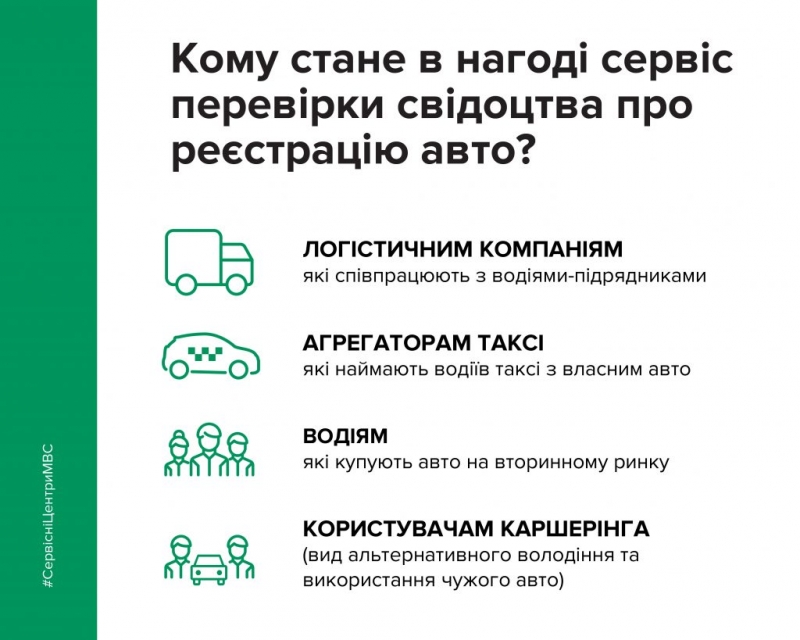 «Мы рады предложить сервис, который будет полезен не только гражданам, но и бизнесу. Возможность самостоятельно проверить свидетельство о регистрации транспортного средства может обезопасить рынок от мошенничества при получении транспортных услуг, при найме сотрудников на работу, каршеринге и покупке авто и т.д.», — отметил начальник Главного сервисного центра МВД Владислав Криклий.