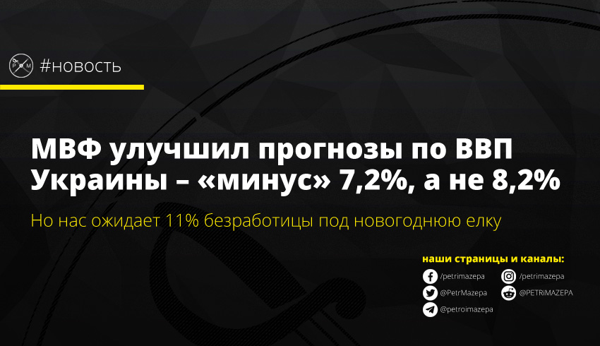 МВФ улучшил прогнозы по ВВП Украины – «минус» 7,2%, а не 8,2%