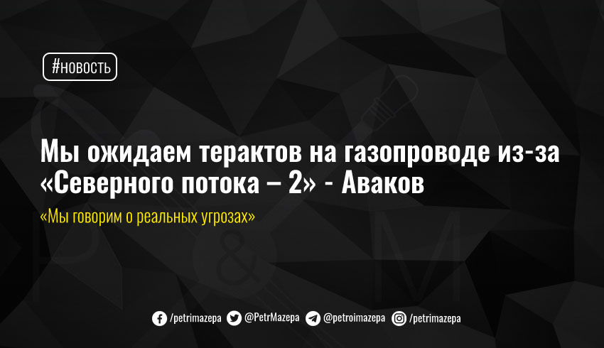 Министр внутренних дел Арсен Аваков заявил, что ожидает провокаций и попыток терактов на украинском газопроводе из-за завершения строительства «Северного потока 2». Он подчеркнул – МВД рассчитывает, что именно такие методы может использовать страна-агрессор в качестве повода для прекращения транспортировки газа через Украину.