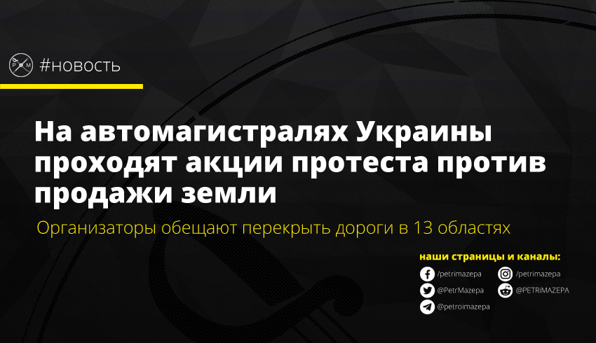 На автомагистралях Украины проходят акции протеста против продажи земли