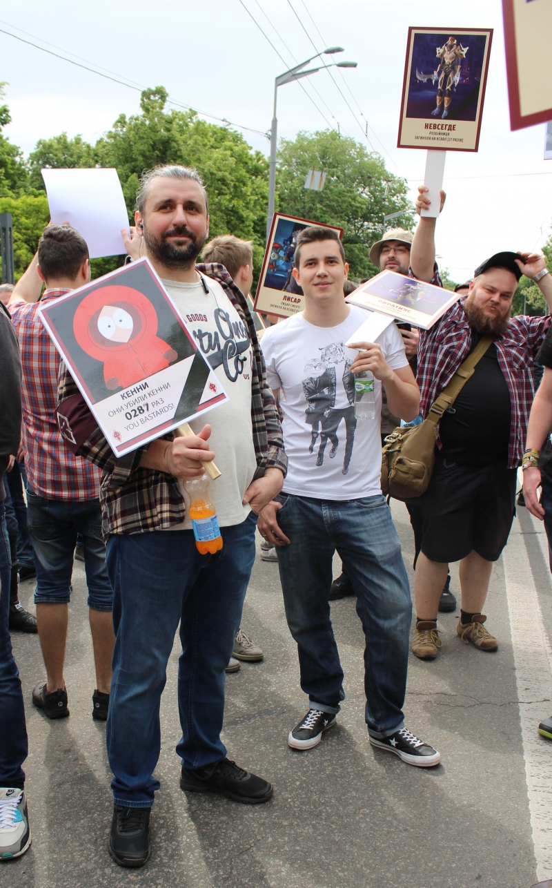 В Киеве и Запорожье параллельно маршу «Бессмертного полка» состоялись шествия орков, троллей и других персонажей компьютерной игры World of Warcraft и популярных франшиз, организованные партией «Демократическая Орда». Более сотни участников под барабанный бой прошли с портретами погибших в виртуальных боях героев – Иллидана, Гарроша, Терминатора Т-1000, и, конечно же, Кенни.
