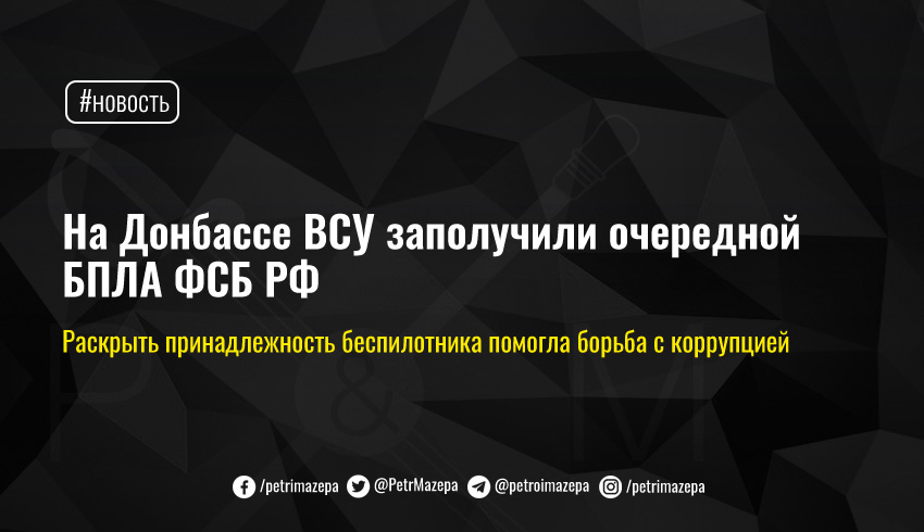 Как сообщает журналист Александр Махов на своей странице в Facebook, у БПЛА села батарейка и он досрочно завершил свой полет. И на поврежденной батарее «нашли голографическую бирку с надписью ФСБ РФ с серийным номером. Дело в том, что в РФ все государственные закупки должны быть маркированными для предотвращения коррупции. Поэтому, получается, что этот беспилотник был куплен ФСБ и отправлен на Донбасс», - уточняет журналист.