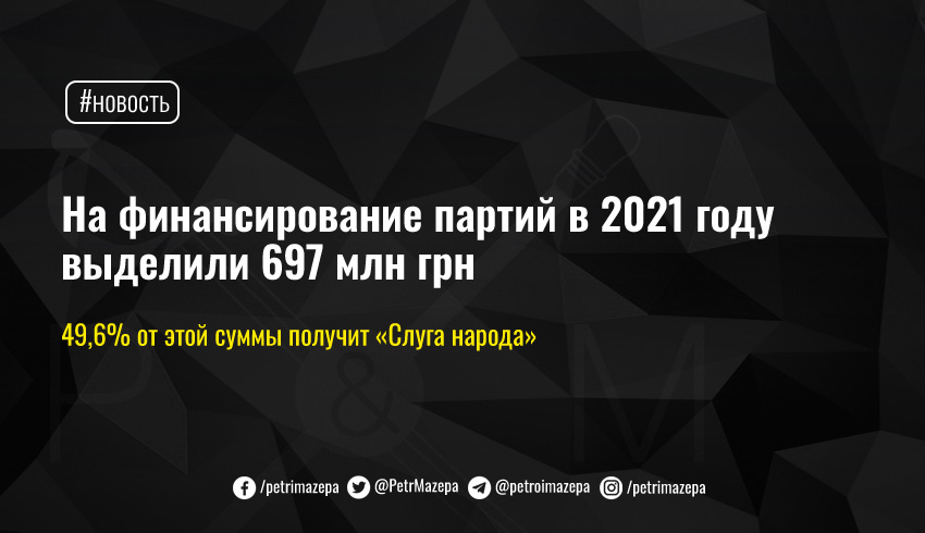 На финансирование партий в 2021 году выделили 697 млн грн