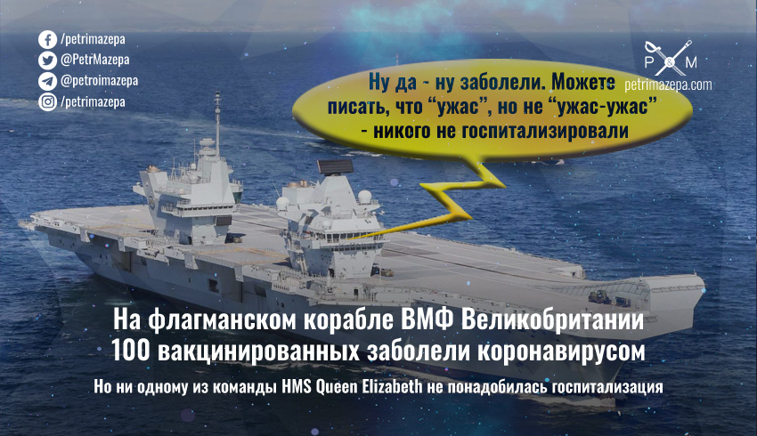 И добавляет, со ссылкой на источники в ВМФ Великобритании, что ни один из положительных случаев не нуждался в госпитализации. А общее количество заболевших начало сокращаться.