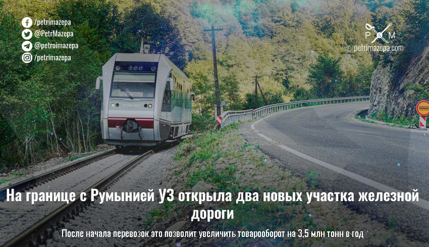 «Рахов — Берлебаш — госграница и Тересва — госграница. Это 19,3 км и 1,1 км нового пути, которые были построены за рекордные 2 месяца. Эти два участка в будущем станут третьим и четвертым стыками на границе с Румынией — нашему наиболее загруженному направлению», — сообщил председатель правления «Укрзалізниці» Александр Камышин.