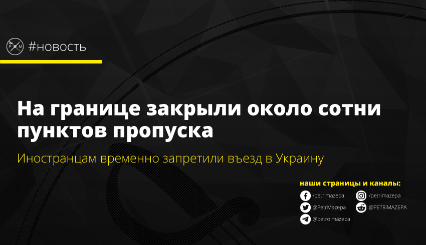 В соответствии с решениями СНБО и правительства, принятыми из-за пандемии COVID-19, в Украине ввели ограничения пропускных операций на госгранице. Вступил в силу и запрет на въезд иностранцев в Украину. Ограничения будут действовать до 3 апреля, если из-за ситуации с распространением заболеваемости вирусом не будет принято другое решение