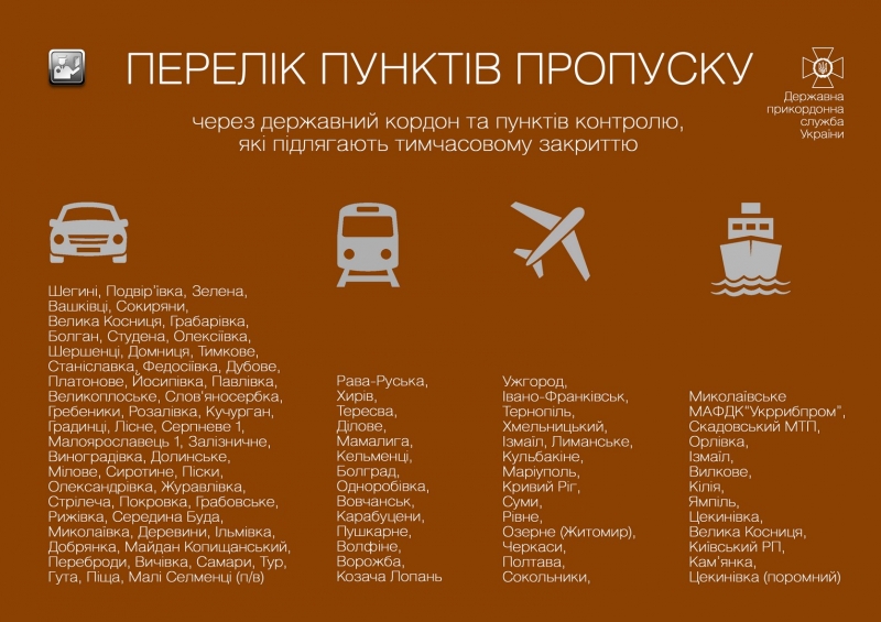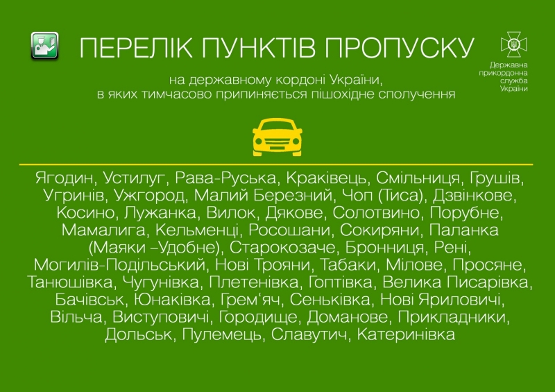 С сегодняшнего дня временно закрывают около сотни пунктов пропуска, еще в почти полсотни пунктов пропуска временно прекращается пешеходное сообщение. Однако при этом продолжат работать пункты пропуска, в которых большая пропускная способность, сообщает пресс-центр ГПСУ.