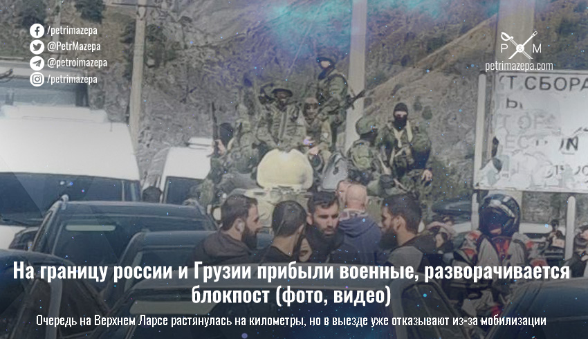 На пропускной пункт в Верхнем Ларсе начали прибывать российские военные, у пограничного пункта начинают развертывать блокпост, сообщает грузинский блогер Николай Левшиц. Это тот самый КПП, где очередь еще сегодня утром составляла несколько километров, а время ожидания приближалось к двум суткам.