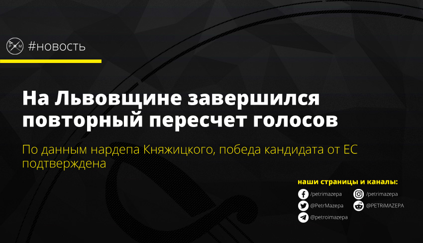 Информацию о том, что пересчет голосов подтвердил победу Михаила Бондаря, озвучил и львовский журналист Антон Борковский. Также он сообщил, что кандидат от «Слуги народа» Орест Кавецкий уже поздравил Бондаря, после чего покинул зал ОИК.