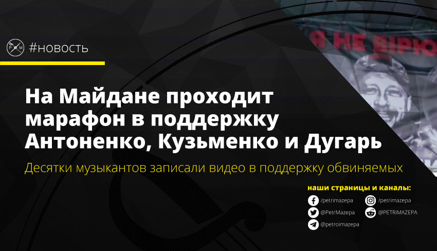 Музыкальный марафон «Білими Нитками» в поддержку Андрея Антоненко, Юлии Кузьменко и Яны Дугарь стартовал в Киеве на Майдане Независимости. Организаторы предварительно заявили о десятичасовом выступлении многих украинских групп и активистов. Также появились десятки обращений от музыкантов со словами поддержки тех, кого следствие обвиняет в убийстве Павла Шеремета.