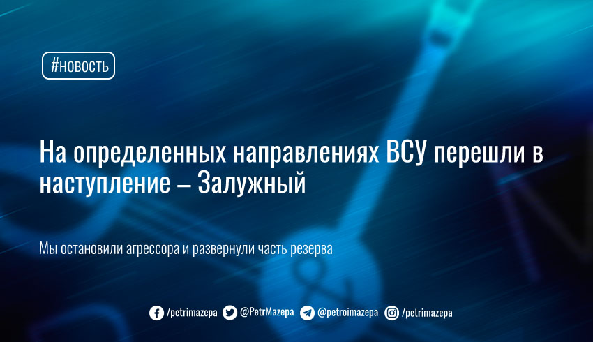 Главнокомандующий ВСУ Валерий Залужный сообщил, что защитники Украины перешли в контрнаступление на определенных направлениях.