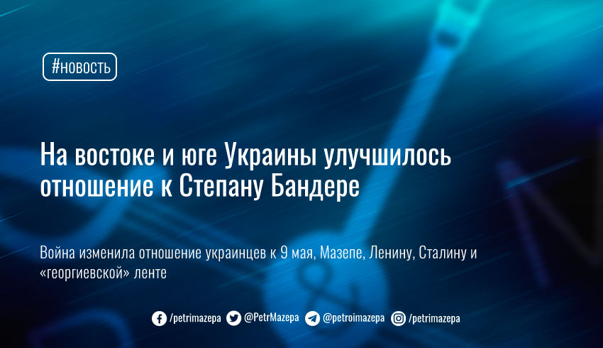Социологическая группа «Рейтинг» представила результаты общенационального опроса об идеологических маркерах войны — украинцы, в том числе жители юга и востока страны, в основном положительно относятся к ОУН-УПА, Степану Бандере и Ивану Мазепе. Изменилось и отношение к 9 мая — подавляющее большинство считает его не Днем победы, а Днем памяти жертв войны.
