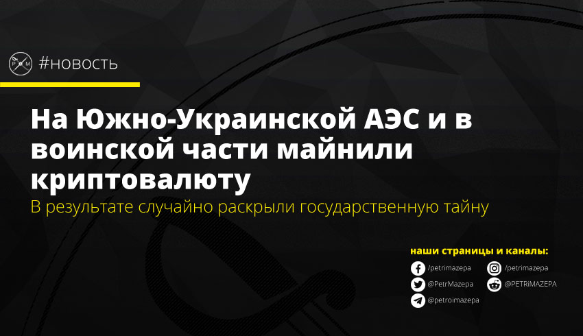 Сотрудники Южно-Украинской АЭС майнили криптовалюту на территории станции, из-за чего раскрыли государственную тайну. Также несанкционированная техника для майнинга была найдена на территории воинской части 3044, охраняющей объекты энергокомплекса.