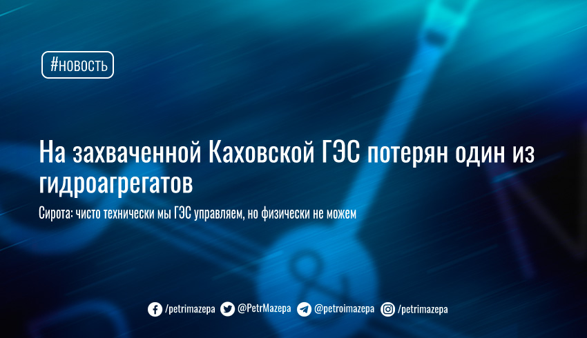 Генеральный директор ЧАО «Укргидроэнерго» Игорь Сирота заявил, что на захваченной россиянами Каховской ГЭС перестал работать один из шести гидроагрегатов. По словам Сироты, паводок в этом году ниже среднего, поэтому потеря агрегата не влияет на безопасность работы ГЭС. Воду пропускают через оставшиеся агрегаты.