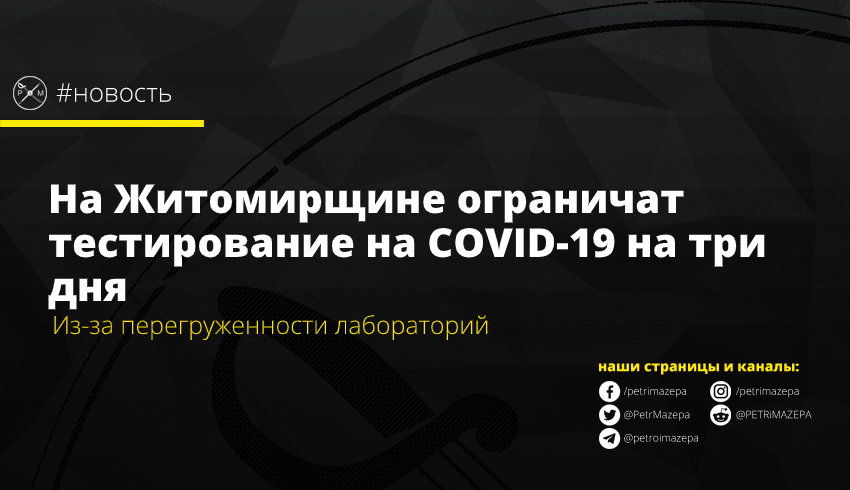 В Житомирской области из-за перегруженности лаборатории ограничат тестирование на коронавирус минимум на три дня.