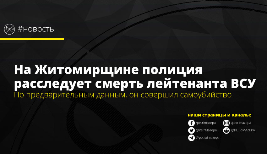 В Житомирской области, г. Чуднев, полиция расследует смерть военнослужащего ВСУ – 28-летний лейтенант из Херсонской области, по предварительным данным правоохранителей, совершил самоубийство.