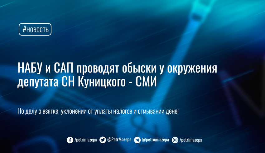 НАБУ и САП проводят обыски у окружения депутата СН Куницкого - СМИ