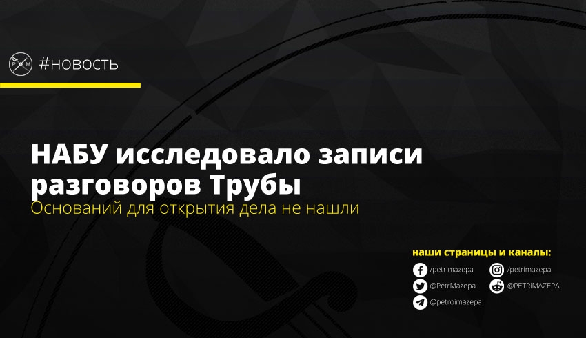 Национальное антикоррупционное бюро изучило опубликованные в Telegram записи разговоров вероятно директора ГБР Романа Трубы. Однако оснований для открытия дела в Бюро не нашли.