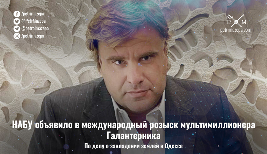 Национальное антикоррупционное бюро Украины (НАБУ) объявило в международный розыск известного одесского бизнесмена Владимира Галантерника по делу о расхищении общественной земли в Одессе. В этом деле ущерб оценивается в 689 млн грн, а компанию Галантернику составляют мэр Одессы Геннадий Труханов и экс-прокурор Одесской области Олегу Жученко.