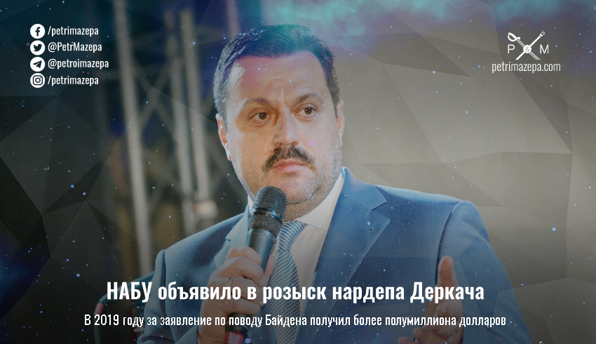 Пресс-служба НАБУ сообщает, что бывшего нардепа разоблачили в госизмене и незаконном обогащении. Правоохранители сообщают, что заявления Деркача, которые он озвучил в 2019 году по поводу Джо Байдена и его сына, были российской кампанией, которая хотела повлиять на выборы в США. За свои «услуги» Деркач «подзаработал» более полумиллиона долларов.