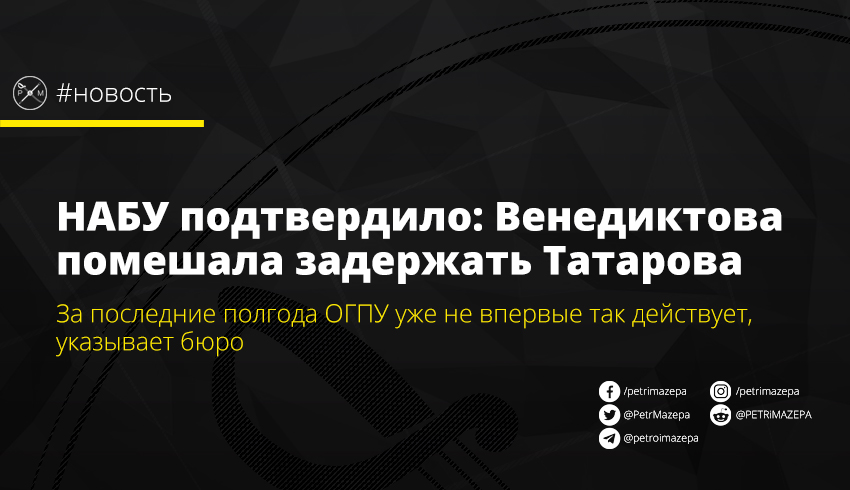НАБУ подтвердило: Венедиктова помешала задержать Татарова
