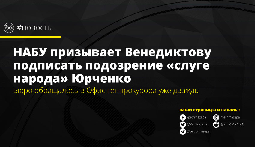 НАБУ призывает Венедиктову подписать подозрение «слуге народа» Юрченко