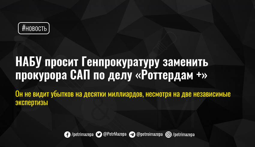 НАБУ просит Генпрокуратуру заменить прокурора САП по делу «Роттердам +»