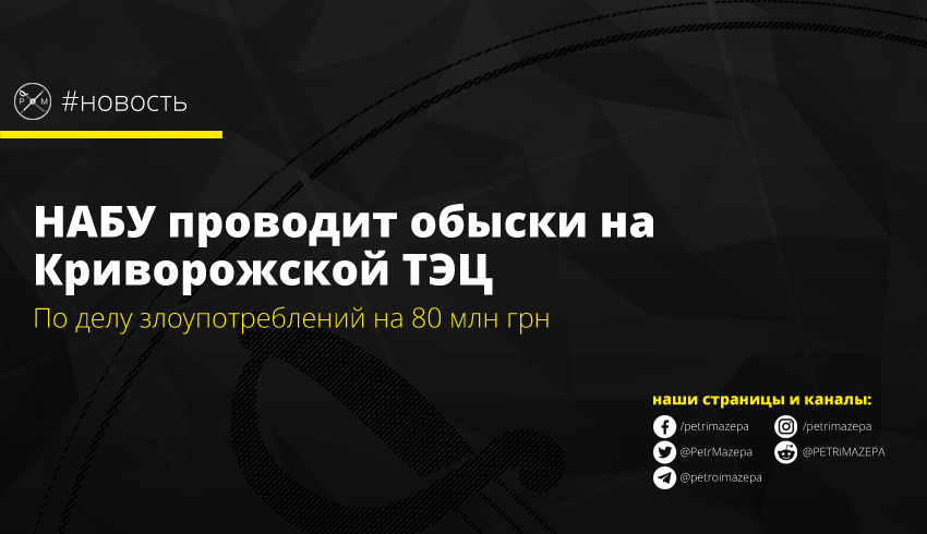 Детективы Национального антикоррупционного бюро (НАБУ) проводят обыски на Криворожской теплоцентрали (ТЭЦ). Следственные действия проводятся по делу о возможных злоупотреблениях должностными лицами на 80 млн грн (3,1 млн долл).